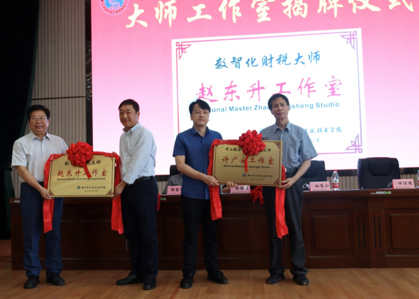 随后,与会领导共同上台为“小微企业风险防控技术协同创新中心”启动暨大师工作室剪彩,并为“赵东升工作室”和“许广安工作者”揭牌。