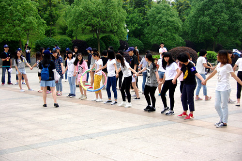 团委秘书处徐沙莉简单的介绍了活动目的和比赛规则,风采大赛正式开始。此次大赛分为“大胆向前走”、“传递呼啦圈”和“链接加速”三个项目, 每项活动分六轮,每轮设两个班级比赛。此次比赛的三个项目各有特点,大胆向前走考验了队员默契度的配合,传递呼啦圈需要灵活的技巧,链接加速单脚借力虽是不易,但所有人的团结能克服一切障碍。经过一个小时的激烈角逐,风采大赛完美落幕。