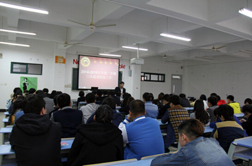 为贯彻落实学院关于加强“三风”建设的要求,按照本学期的工作计划,3月18日下午3点整,商务系在二号教学楼2204教室召开了2014-2015学年第二学期三风建设动员大会。大一和大二各班的班长、团支书以及学生会的干部参加了会议。会议由系学生党支部副书记、团总支书记、辅导员易烈翔老师主持。