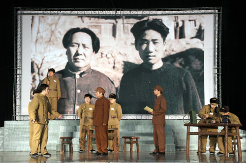 为丰富学院的校园文化,提升学生艺术欣赏的能力和文化修养,同时为纪念毛泽东主席诞辰120周年。11月12日下午,杭州话剧团为我院带来了红色经典剧目《毛泽东与他的长子》。