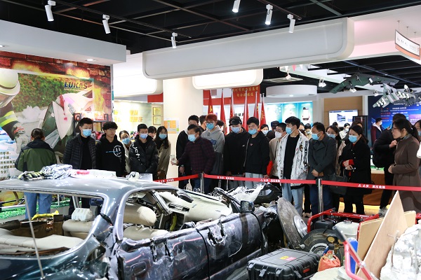 参观结束后,咸亨国际为我校师生介绍了咸亨国际目前在无人机产业方面的成果,并就无人机等设备在行业应用、专业教学过程中的使用与我校师生进行了交流,为日后的合作打下了基础。对智能技术系师生的到来表示了热烈的欢迎,并由人力资源部韩经理带领师生们分五组参观了无人机、机器人、城市轨道交通等设备,体验了车祸模拟现场、地震模拟屋等各种紧急突发事件模拟情况,学习了车辆在落水情况下的破窗逃生技巧、家庭小型火灾处置方法,还使用VR设备身临其境地学到了常规灾难发生时的安全应急知识,帮助师生们掌握了不同情境下的逃生技能与技巧。