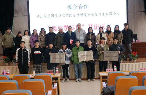 “奥克学徒班”顺利开班标志着校企合作进入了一个崭新的阶段,通过校企双方优势互补,资源共享,为杭州奥克光电设备有限公司培养更多更高素质技术技能型人才,未来,学校将认真贯彻好新职教法精神,持续推进校企融合深度,创新德技并修、工学结合的育人模式,为学校“双高”建设添砖加瓦。。
