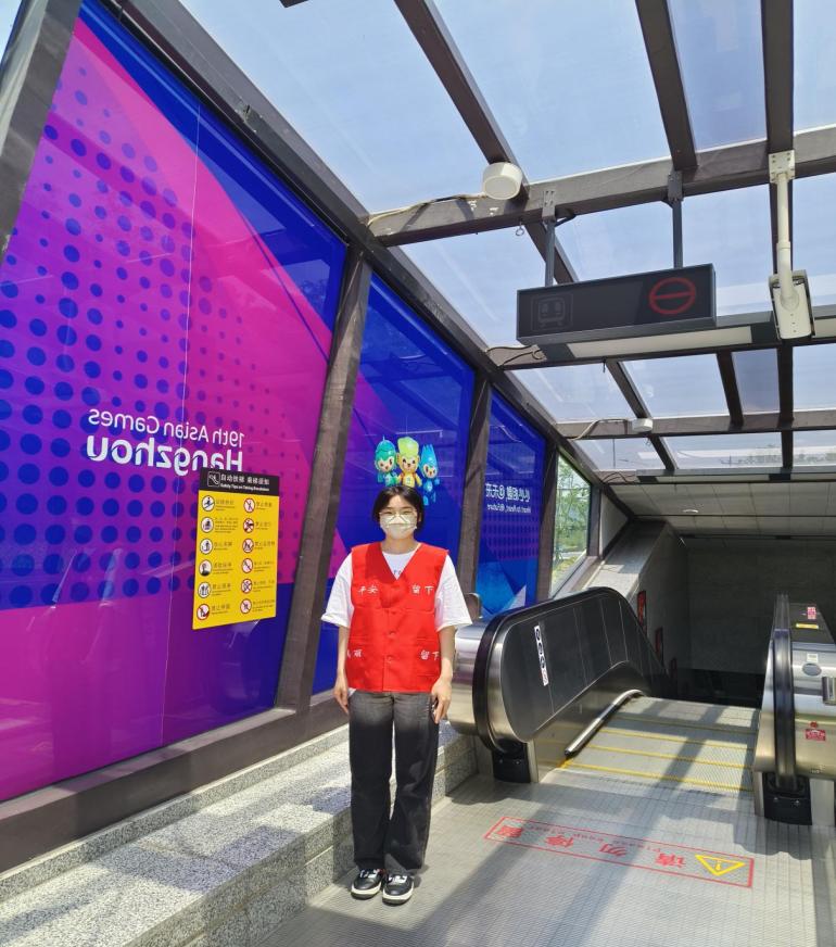 志愿者们以地铁站为城市文明形象展示“窗口”,提供文明倡导、交通指引、便民咨询、城市宣传、赛事宣传等服务。大家热心帮助老年人、儿童等有需要的乘客拿行李;主动与乘客交流,引导乘客们文明有序进站;同时,及时了解乘客需求和意见,并向乘客宣传亚运赛事。