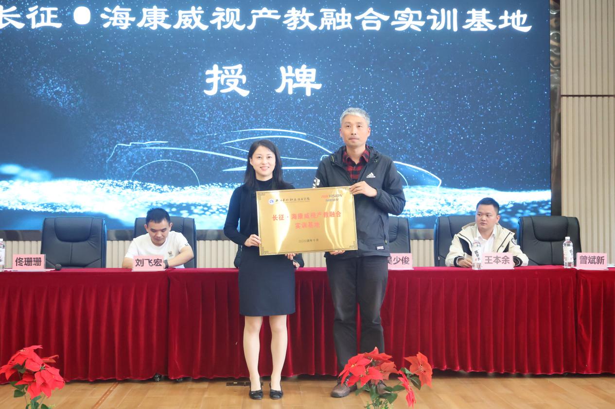 随后,校企双方对“长征·海康威视产教融合实训基地”和“长征·海康威视汽车订单班”进行授牌,并向曾斌新、王本余颁发外聘专家聘书。